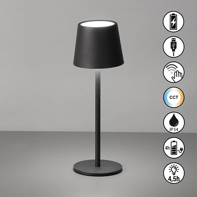 Dankzij de IP54 waterdichtheid is de tafellamp bestand tegen verschillende weersomstandigheden en ideaal voor gebruik in de tuin, op het balkon of terras.